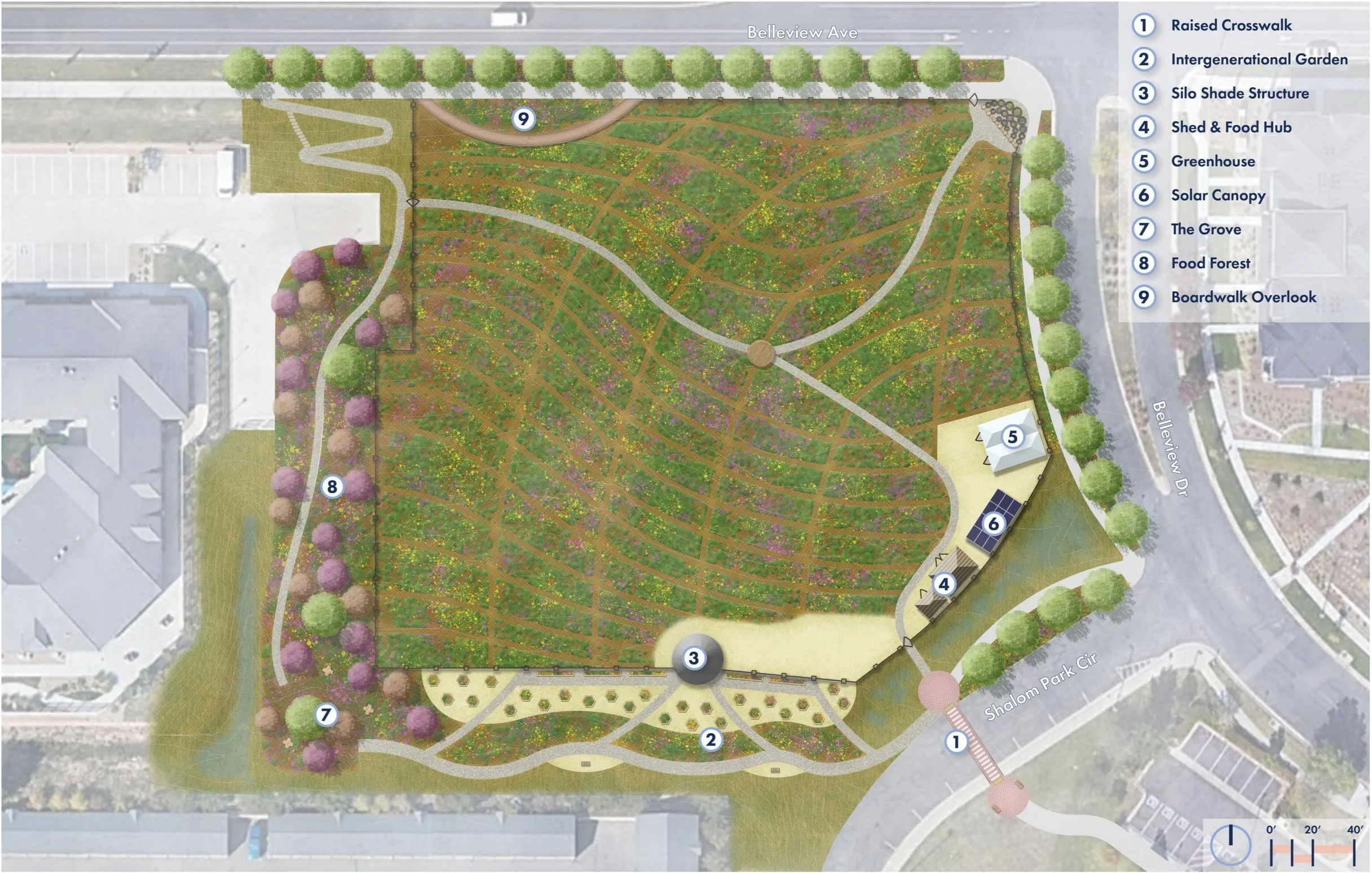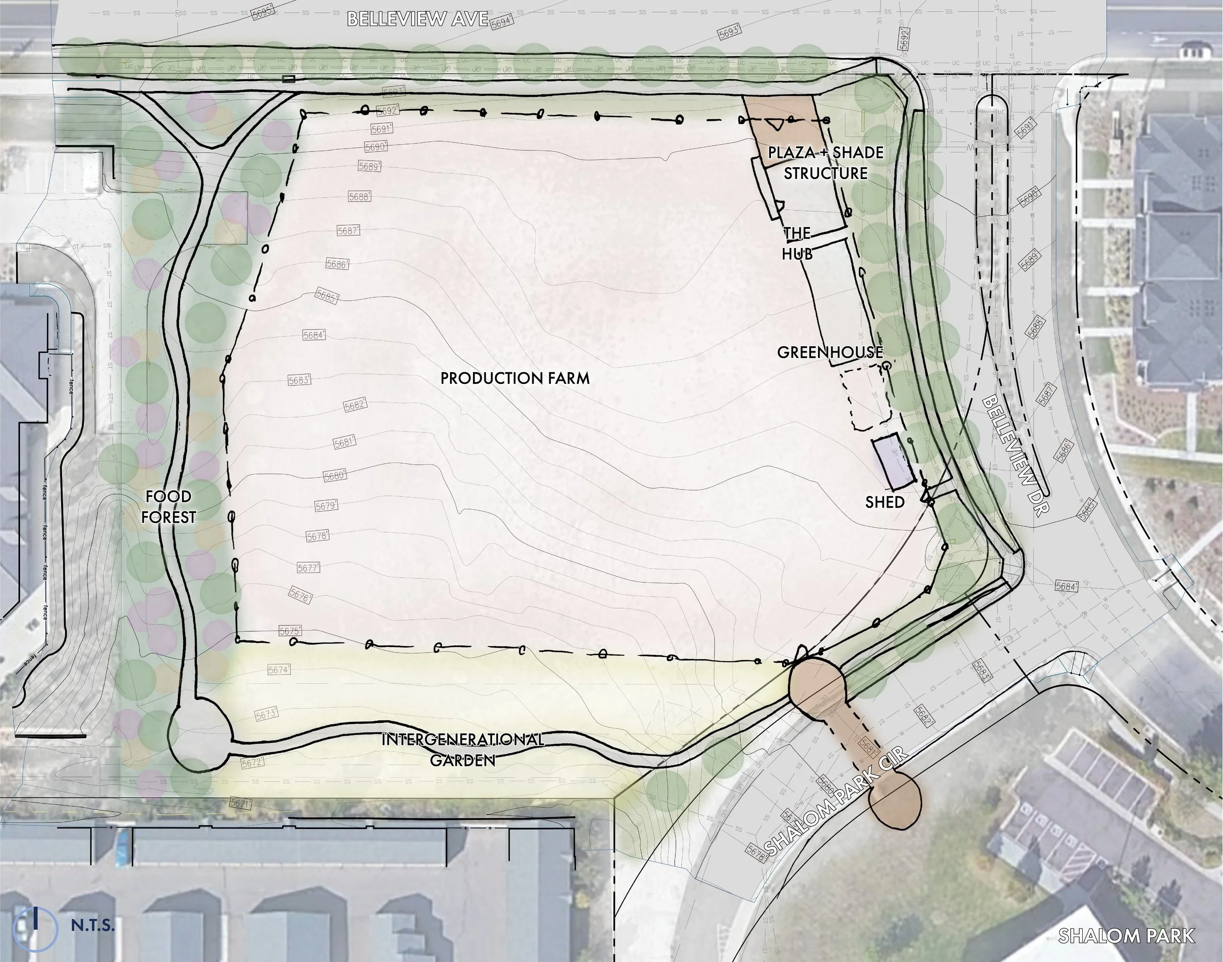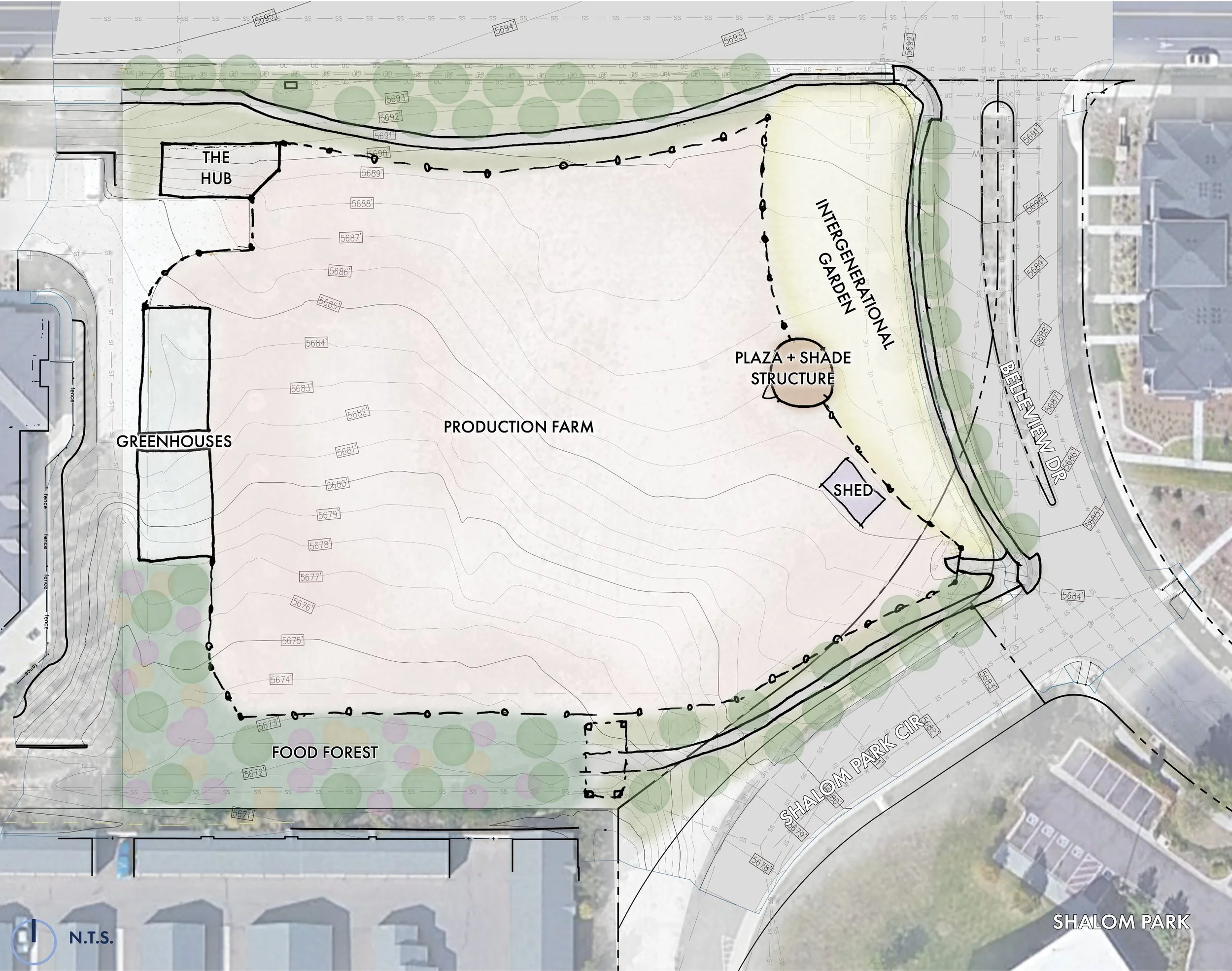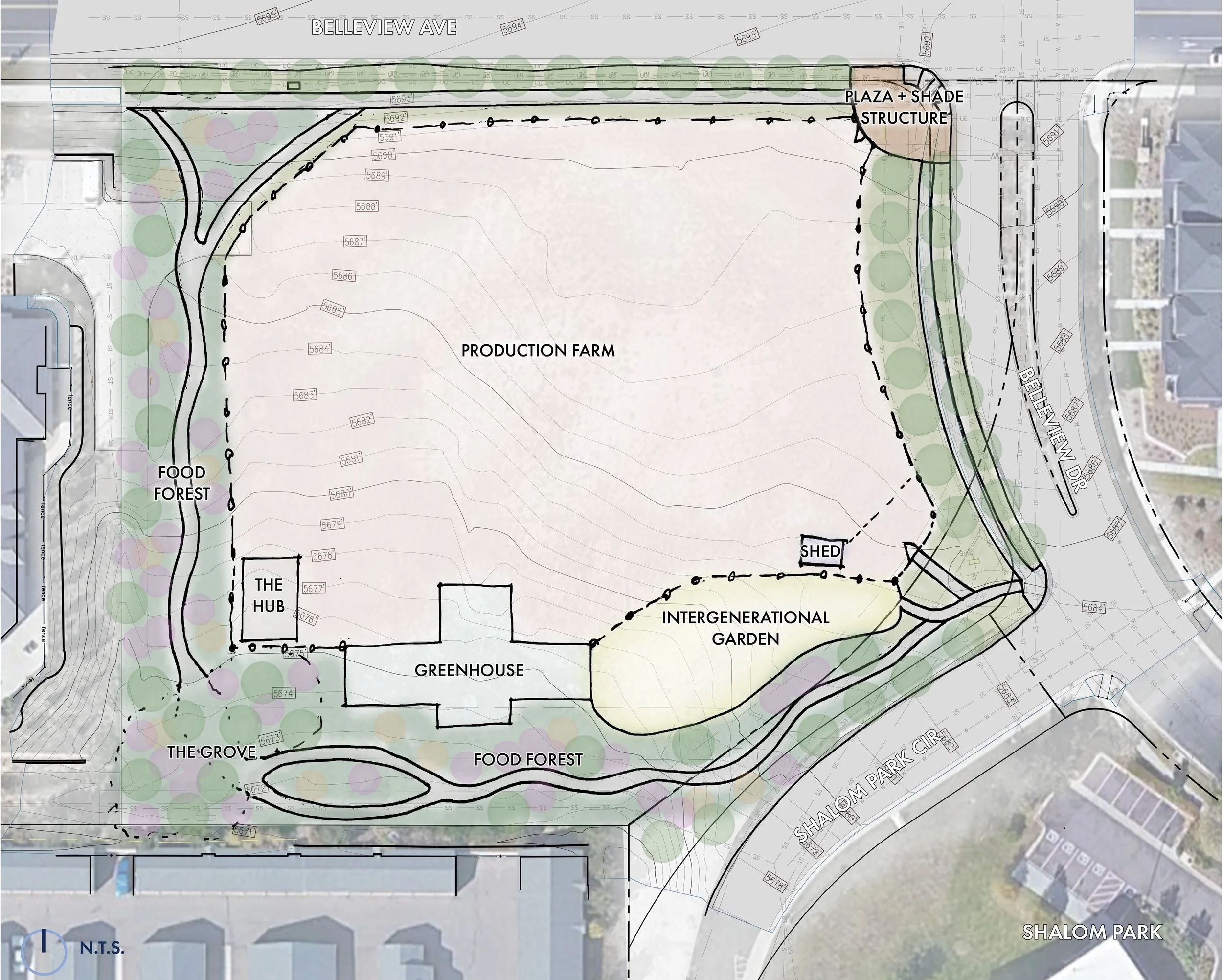 Ekar Farm is a value-driven nonprofit urban farm with a community building mission that’s moving in and developing a new site at Shalom Park in Aurora, CO. As new neighbors, Ekar Farm recognized an opportunity and responsibility to design the space in a way that benefits everyone. The schematic design concepts delivered aim to do just that - propose possible site options that consider daily farm operations, community-building initiatives with adjacent groups, and wider City of Aurora and neighborhood resident’s wants and needs.