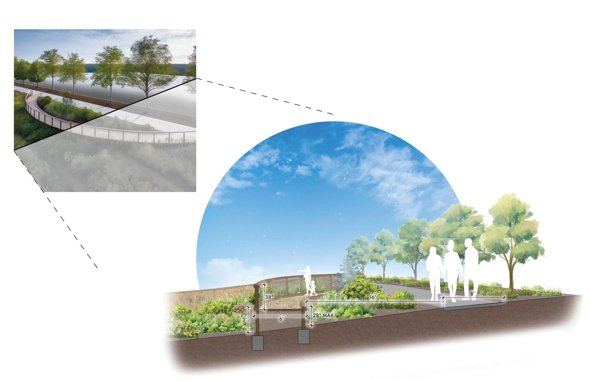 An engaged relationship with Ekar Farm’s staff was a key part of the design process from inception to completion. Site factors such as significant grade change, excellent viewsheds, and soil quality variability were drivers of the spatial layout. Ekar Farm had a goal of providing an intergenerational garden primarily for their Shalom Park Retirement Community neighbors. Considerations of refuge, shade, seating, mobility, accessibility, and opportunities for socialization informed the horizontal, vertical, and aesthetic design choices made.