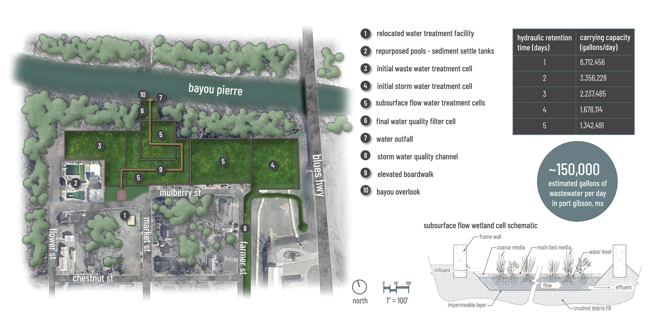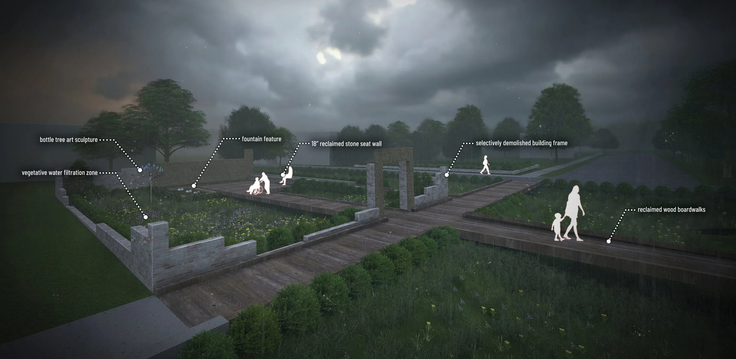 After traveling to Port Gibson, a rural town in Mississippi facing immense challenges, I chose to put effort into design solutions that harness green infrastructure to boost the quality of life for its citizens. Leaning into abandonment with a managed retreat strategy offers a fresh take on resilience, allowing for the regenerative power of decay and rewilding to redefine what rural landscapes can be.